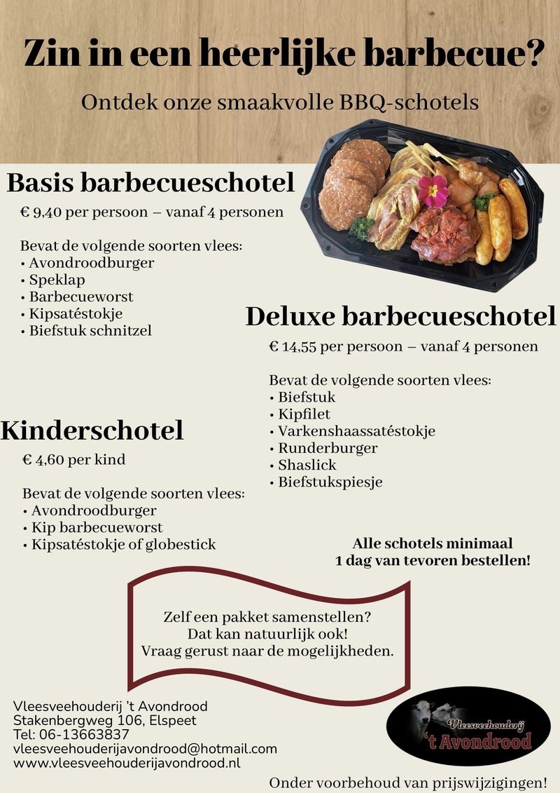 Wij hebben standaard BBQ pakketen, maar uiteraard kunt u het ook naar uw wens samenstellen!